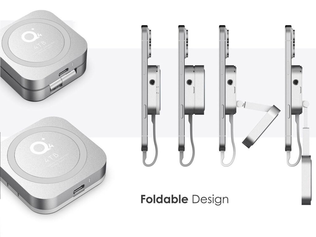 Traditional external drives often suffer from dangling cables during field shoots, which can disrupt camera movements and compromise equipment safety. The ARES Q4+ introduces a highly innovative mechanical design, seamlessly integrating MagSafe-compatible magnetic attachment with a standard 1/4″ threaded hole. This empowers users to securely mount the Q4+ directly onto professional cameras or smartphone rigs. Furthermore, it easily expands with a versatile range of accessories, including tripods, fill lights, suction cup mounts, and rotating gimbals. With comprehensive Type-C compatibility across MacBooks, iPad Pros, Android devices, and the Steam Deck, the Q4+ elevates the SSD from a fragile peripheral to the central hub of a mobile studio.