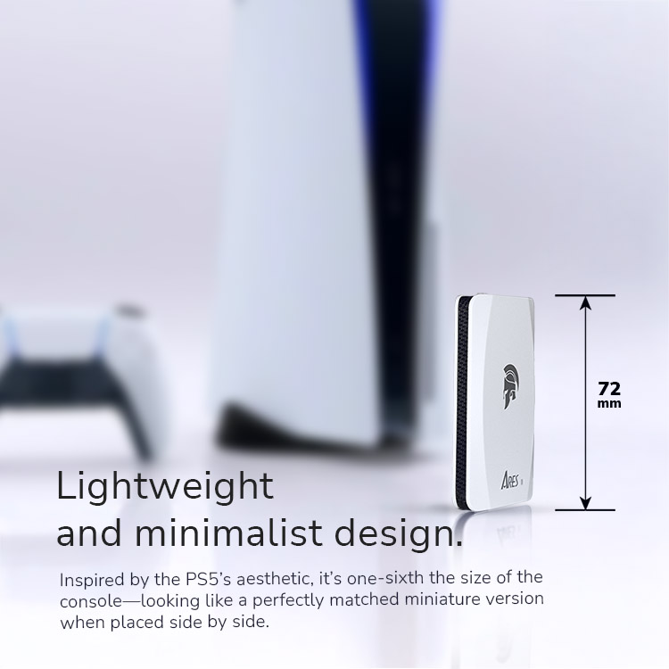 Roughly one-sixth the size of a PS5, it perfectly complements the console’s sleek aesthetics—like a miniaturized twin when placed side by side. Weighing only 25 grams, it fits easily in your pocket while offering blazing-fast 1050/1000MB/s read/write speeds—ideal for transferring large media files, photos, and documents effortlessly.