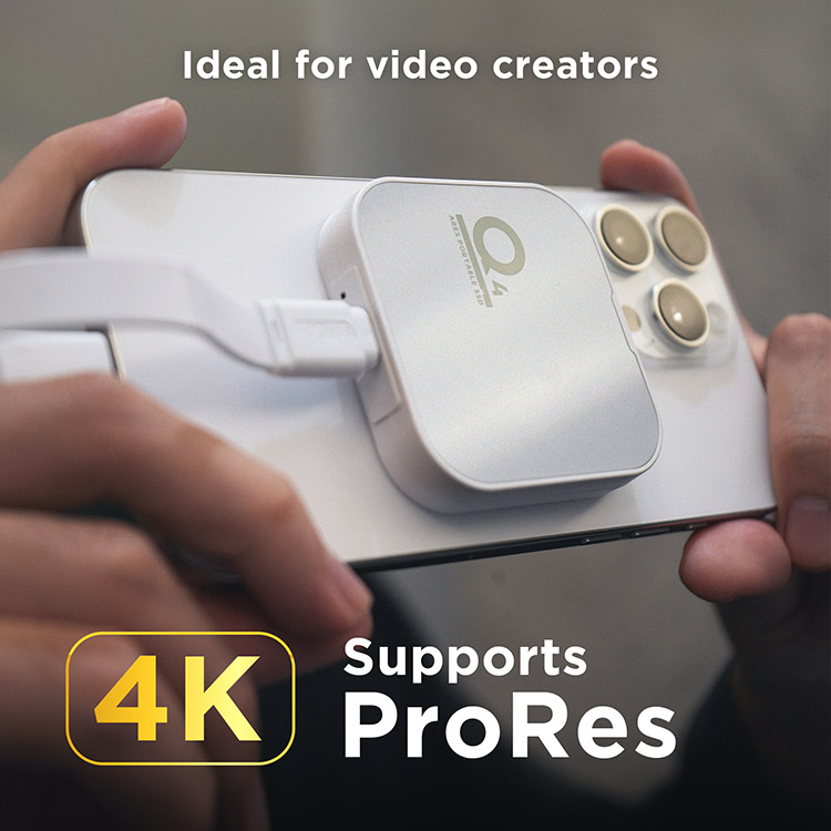 Record 4K HDR ProRes video straight to SSD. No transfer needed—perfect for professional creators.