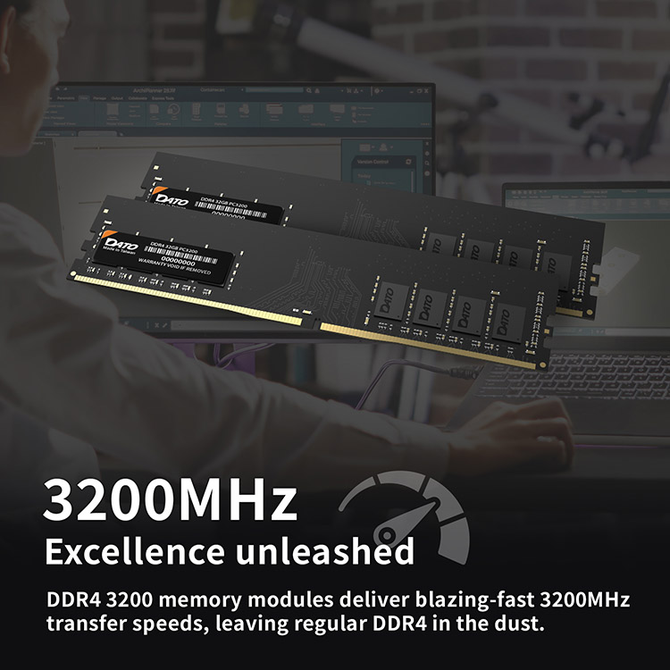 DATO DDR4 3200 U-DIMM memory provides high-efficiency transmission at 3200MHz.