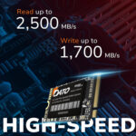 NVMe High Speed technology with read/write speed up to 2500/1700MB/s.