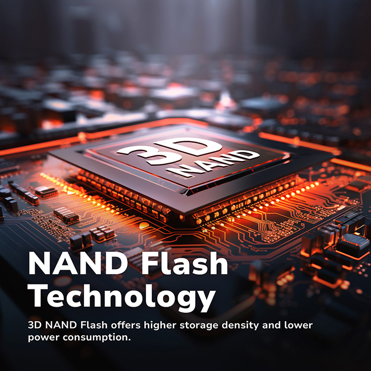 NAND Flash technology offers higher storage density, lower cost, and lower power consumption.