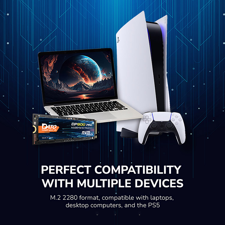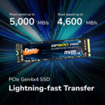 The DP800 Pro SSD uses NVMe (PCIe Gen4x4) technology to reach read/write speeds up to 5100/4600MB/s, delivering smooth gaming and fast creative workflows.