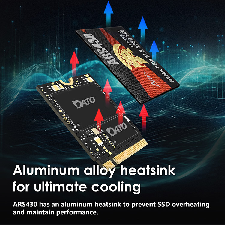 Aluminum heatsink fights heat so your SSD runs fast and stays stable, even when pushed hard.